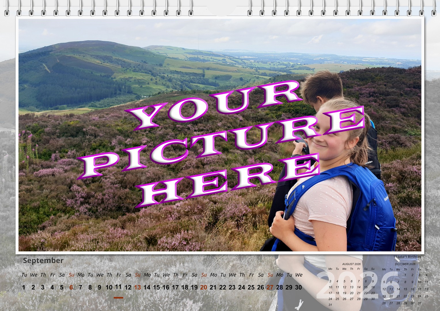 If you want to have a large, full page picture on the front page instead of the 12 small ones, please contact us via email: photocalendaruk@gmail.com
